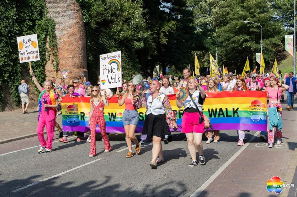 Op Roze Woensdag organiseer ik de PrideWalk: een optocht door het hart van Nijmegen tijdens de Vierdaagsefeesten, in het teken van de queer community. Voor het derde jaar op rij coördineer ik dit evenement tot in de puntjes – van het maken van activistische borden met de LHBT-studentenvereniging tot het aansturen van vrijwilligers en zorgen dat alles op de dag zelf soepel verloopt. Honderden mensen lopen mee: van queer vluchtelingen tot wethouders, van Roze in Blauw tot het COC, en vooral heel veel trotse queer personen. Pride is niet alleen een feest, het is ook protest – en met deze mars laten we luid en zichtbaar zien: wij zijn hier, en wij blijven.